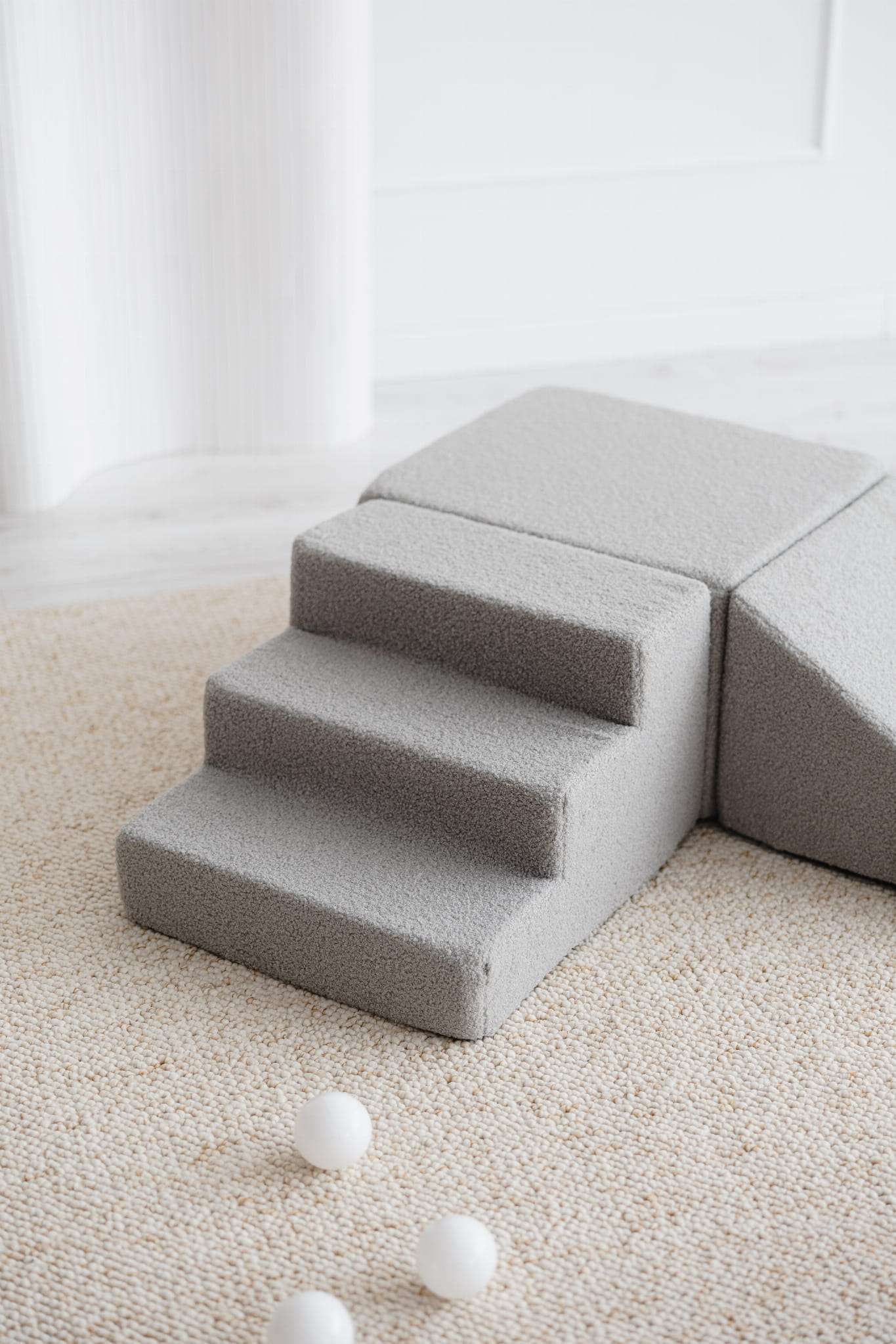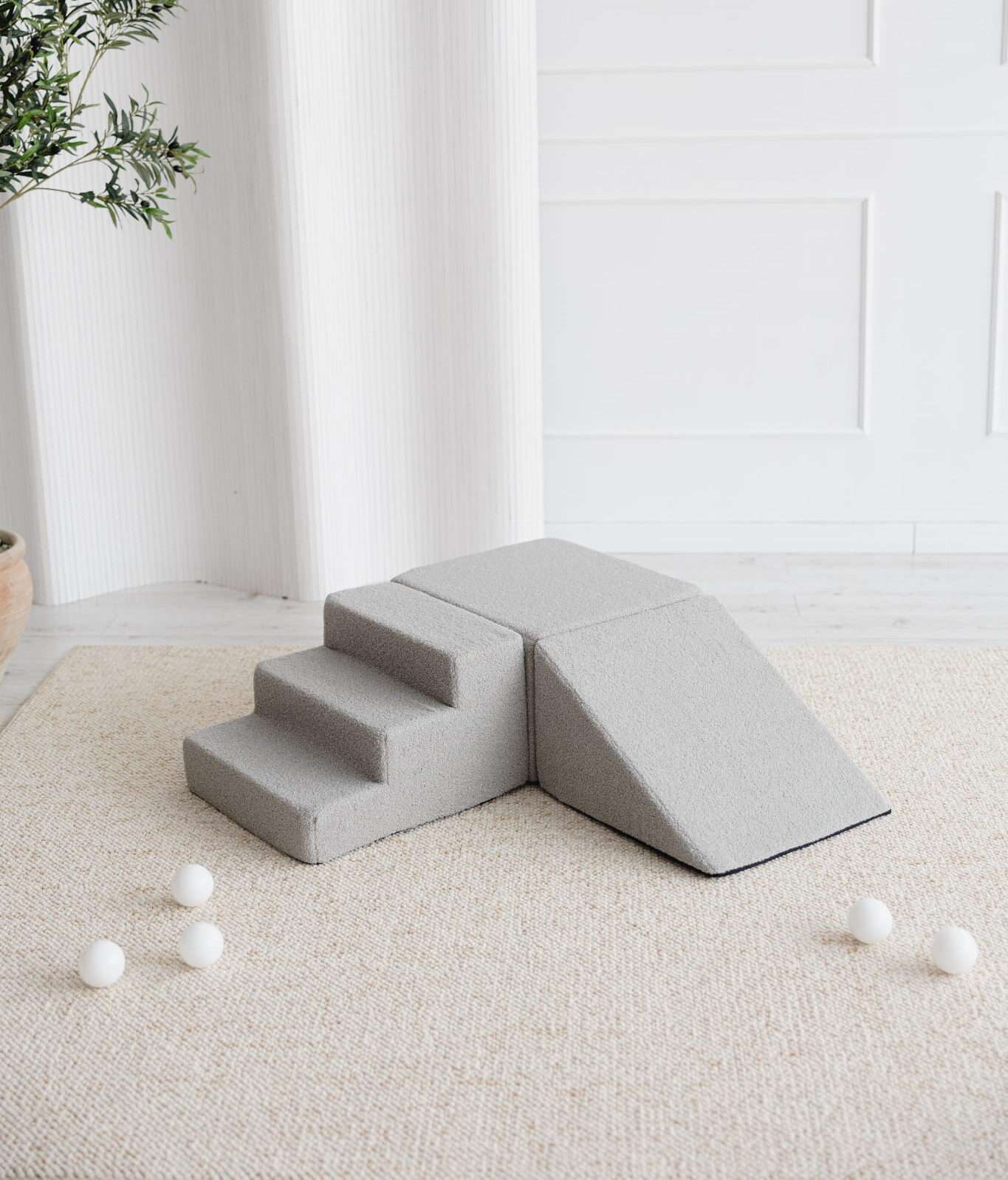 See funktsionaalne mänguklotside komplekt koosneb kolmest pehmest, kuid stabiilsest moodulist. Ideaalne lahendus mängimiseks, ronimiseks, libisemiseks ja motoorsete oskuste harjutamiseks.
