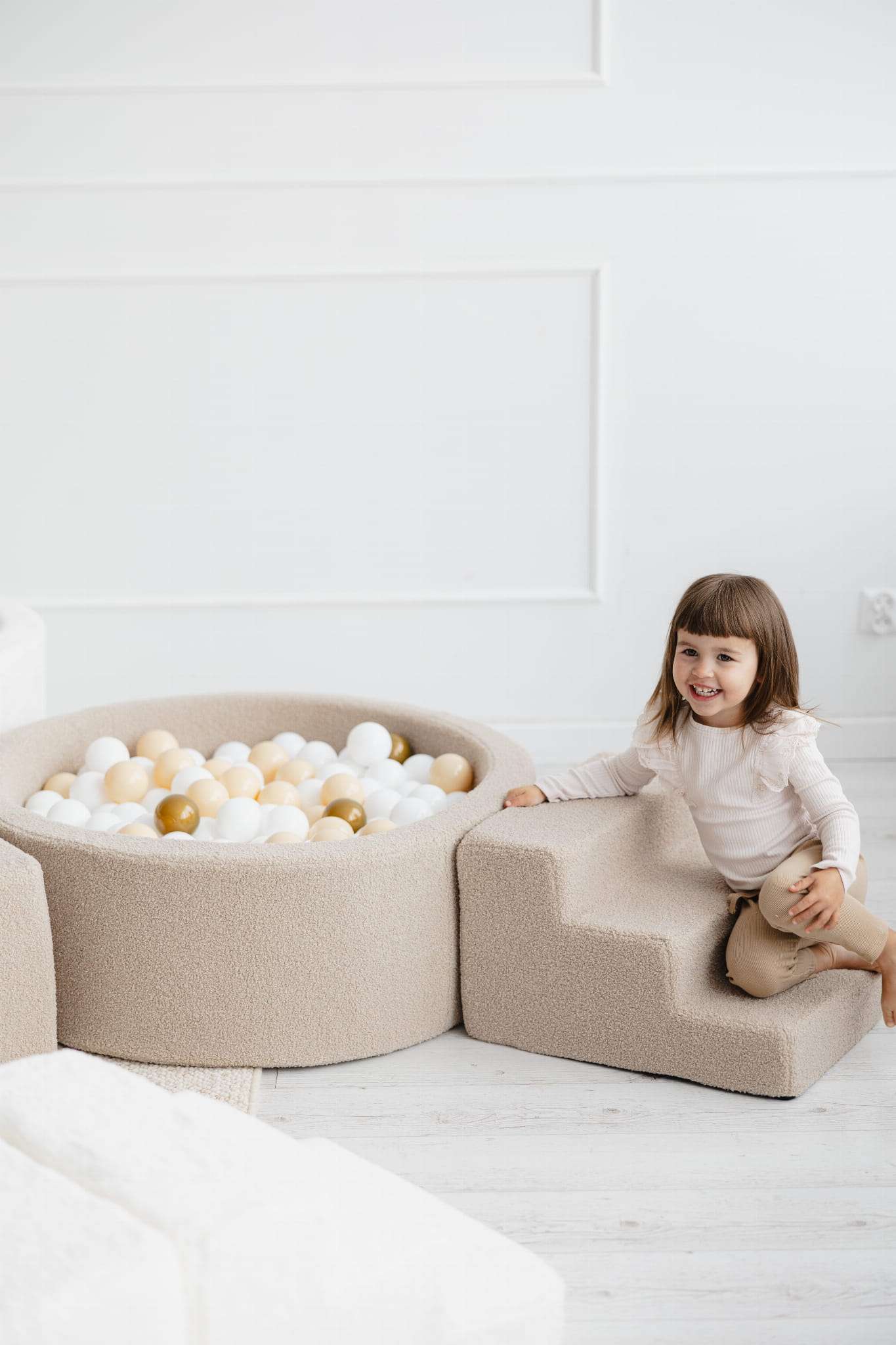 Pehme ja vastupidav vahtraamiga pallimeri pakub rõõmu igale lapsele. Raam taastab kiiresti oma kuju ning on mugav ja turvaline isegi pisematele lastele. Lisaks mängurõõmule arendab pallimeri ka lapse motoorseid oskusi. Raami katab armas buklee kate, mis on ülimalt pehme ja stiilne.