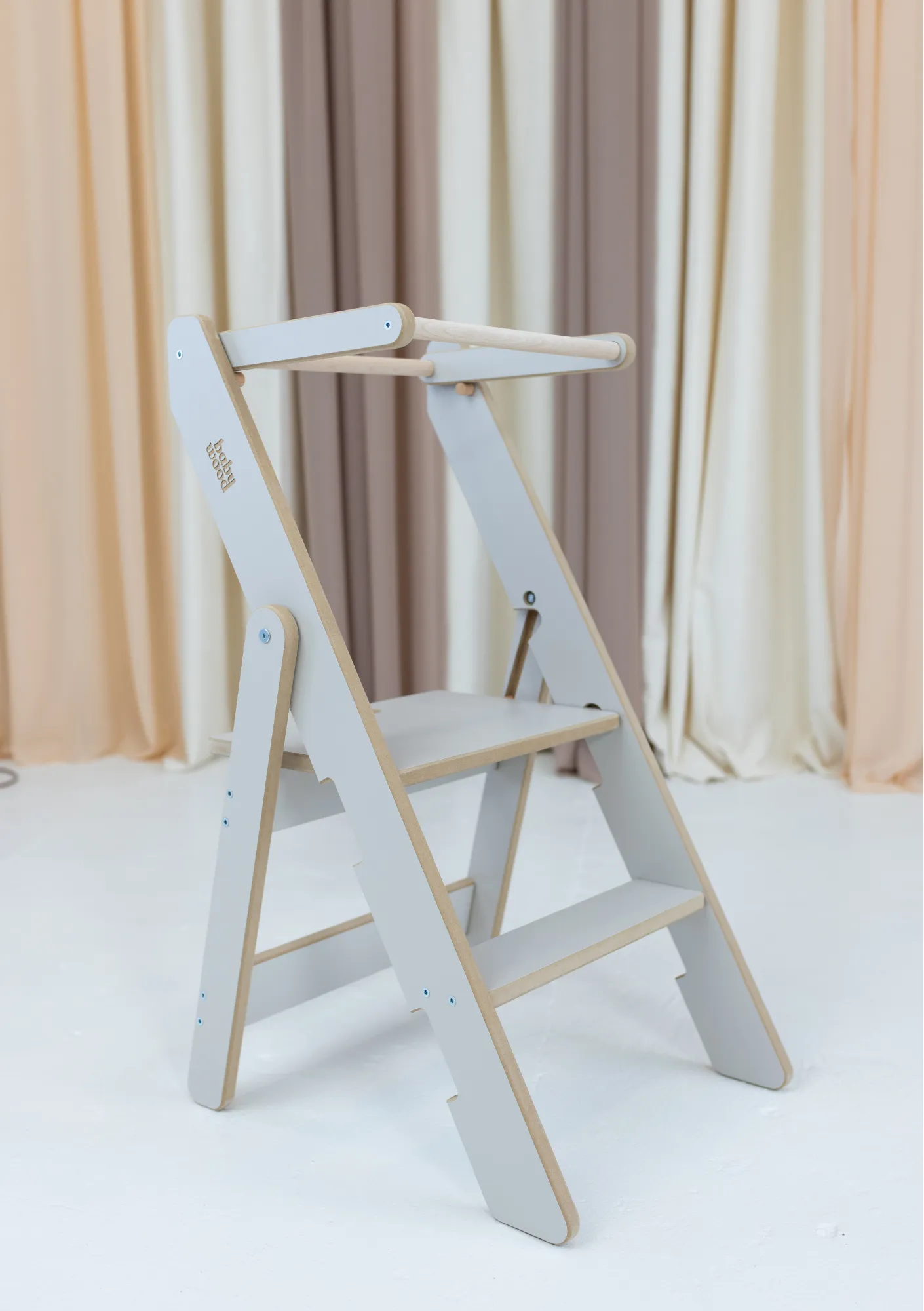Kokkuklapitav torntool on ideaalne abiline köögis, mis muudab lastega kokkamise tõeliselt lõbusaks! Loodud silmas pidades väikelaste turvalisust ja mugavust, võimaldab see nutikas torntool teie lapsel osaleda köögiseiklustes. Saadaval kuues värvitoonis: naturaalne, valge, hall, must, oliiv ja sinine. Naturaalse tooni puhul palume arvestada puidu loomulike mustrite ja värvitooni eripäradega.