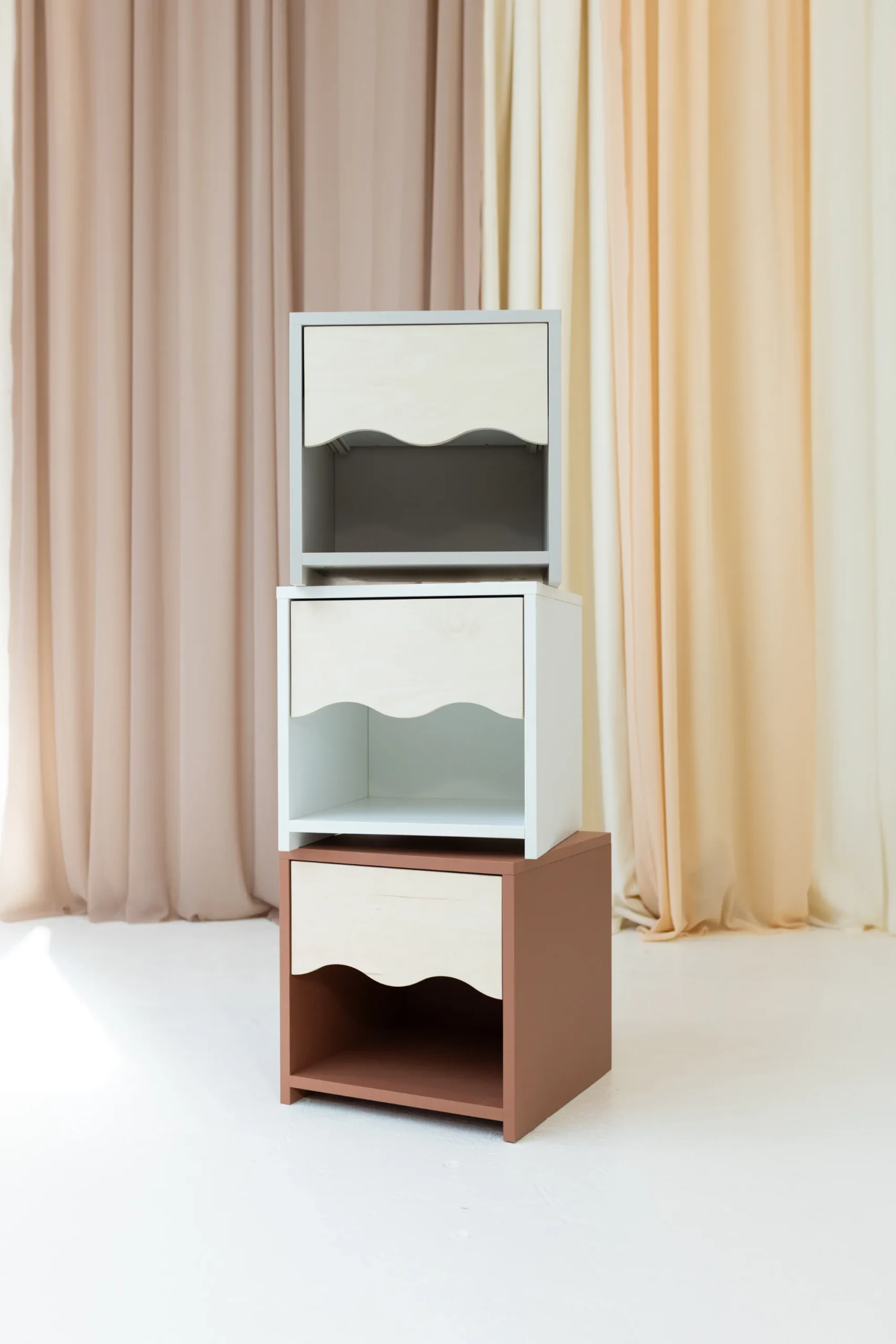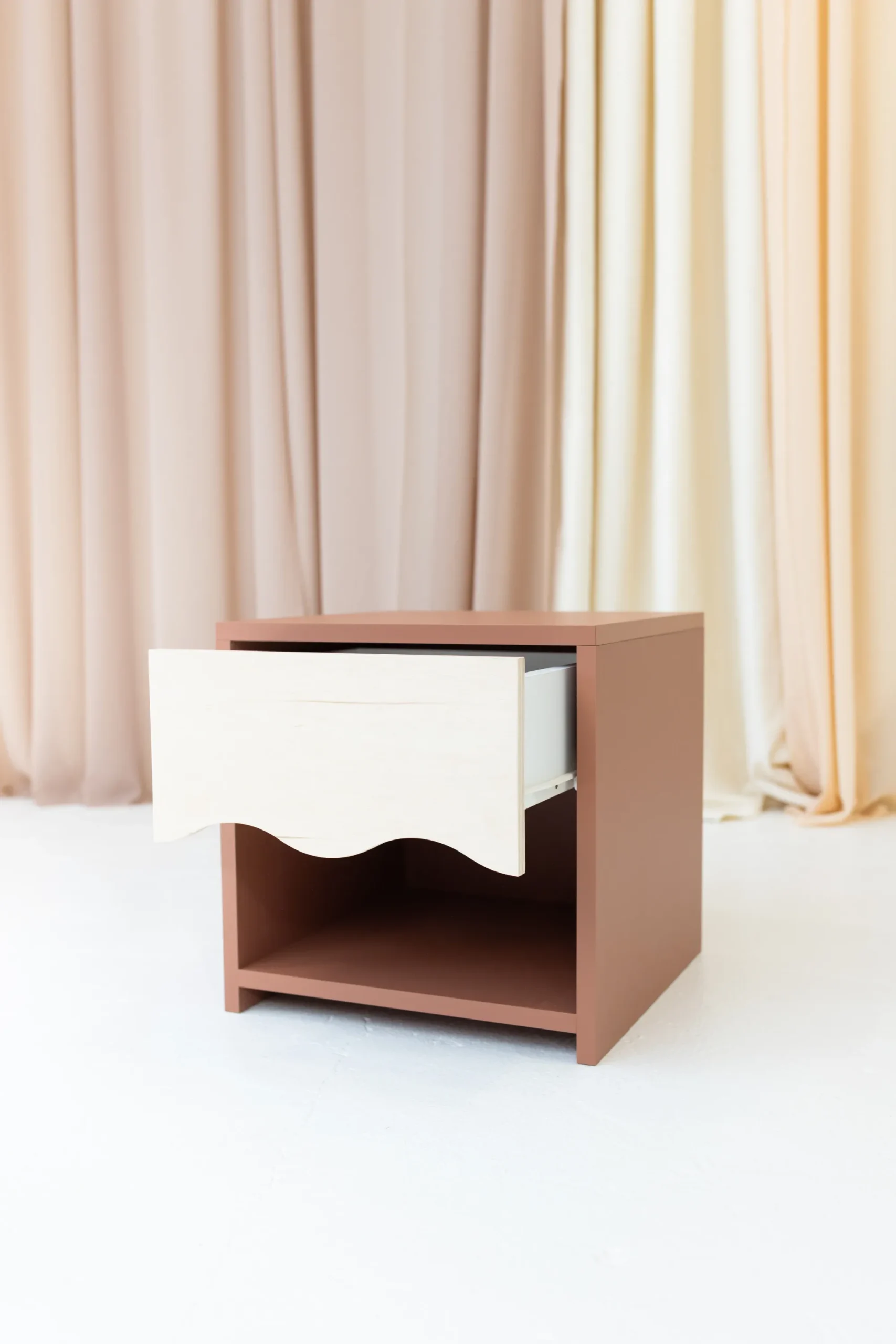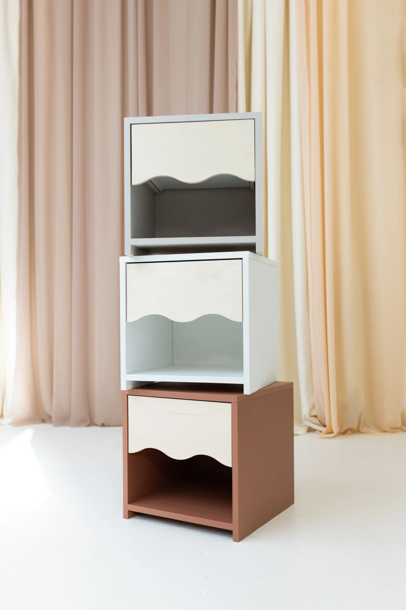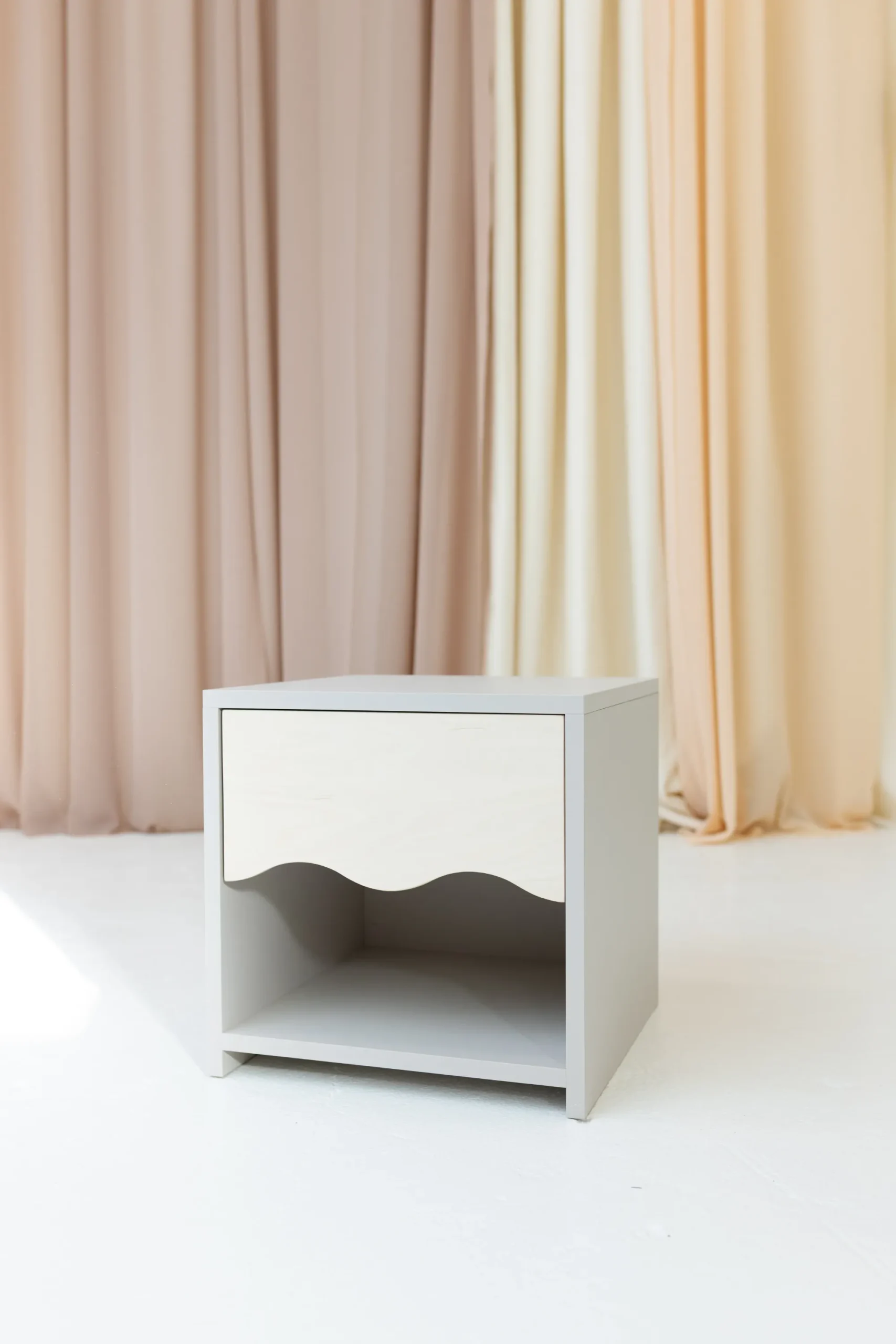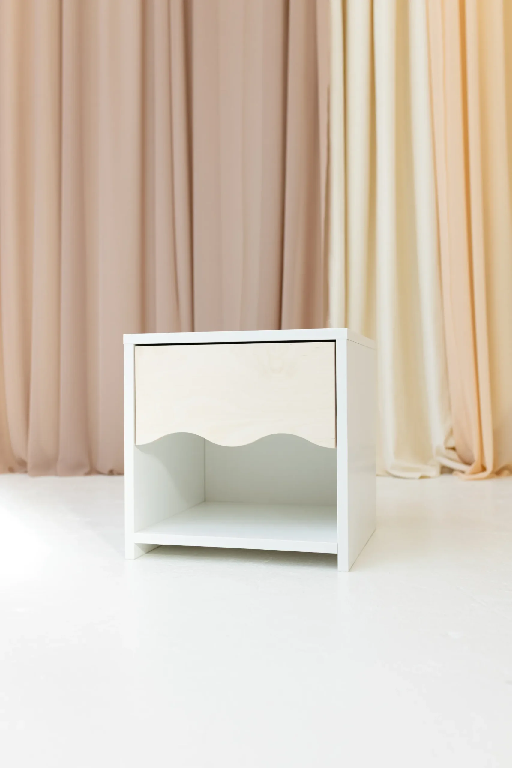WAVE öökapp – funktsionaalne, hubane ja täis iseloomu. WAVE öökapp on ideaalne täiendus lastetoale – kerge, funktsionaalne ja disainitud nii, et ka väiksed lapsed saaksid seda iseseisvalt kasutada. Õrnalt kaardus esipaneel annab sellele erilise iseloomu ja seob selle peenelt ülejäänud WAVE kollektsiooniga. Nii ei ole öökapp mitte ainult praktiline mööbliese, vaid ka dekoratiivne element, mis toob ruumi pehmust ja harmooniat.