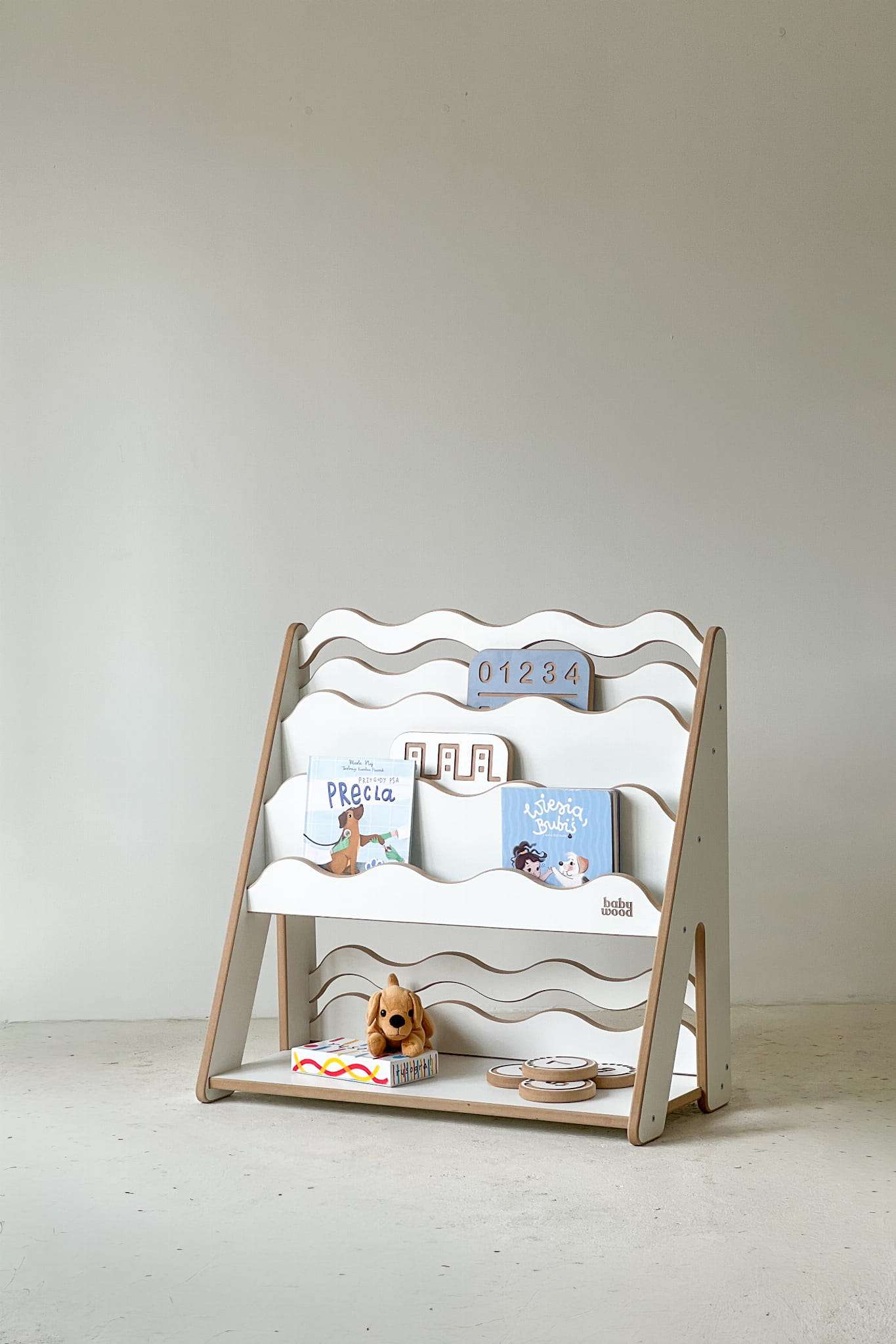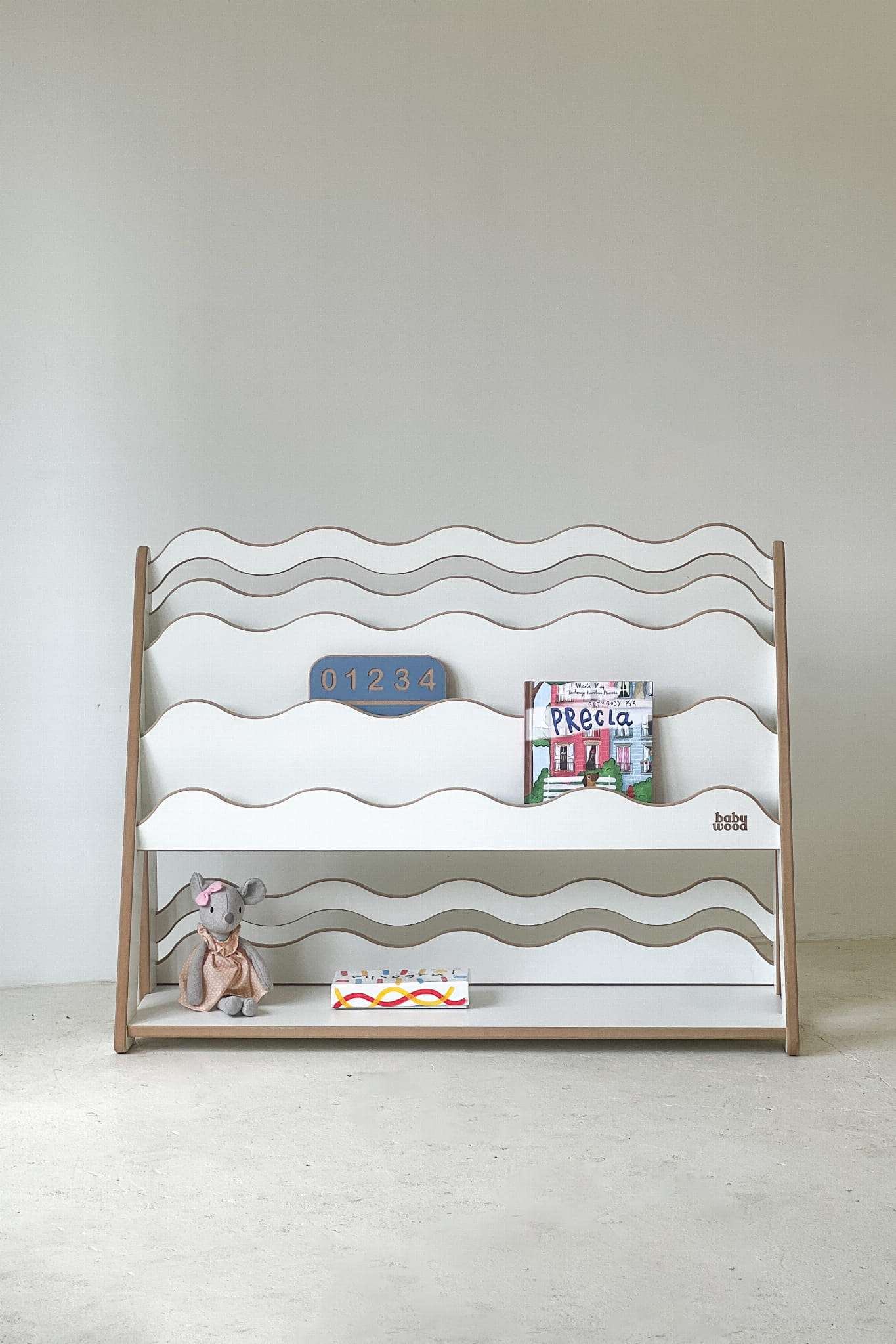 Riiul WAVE raamatute ja mänguasjade jaoks on praktiline kahe funktsiooni kombinatsioon – raamaturiiul ja avatud riiul ühes. See on loodud vanematele, kes soovivad lapse tuppa nii raamatute kui ka mänguasjade hoiukohta, kuid kellel ei pruugi alati olla ruumi kahe eraldi mööblieseme jaoks.