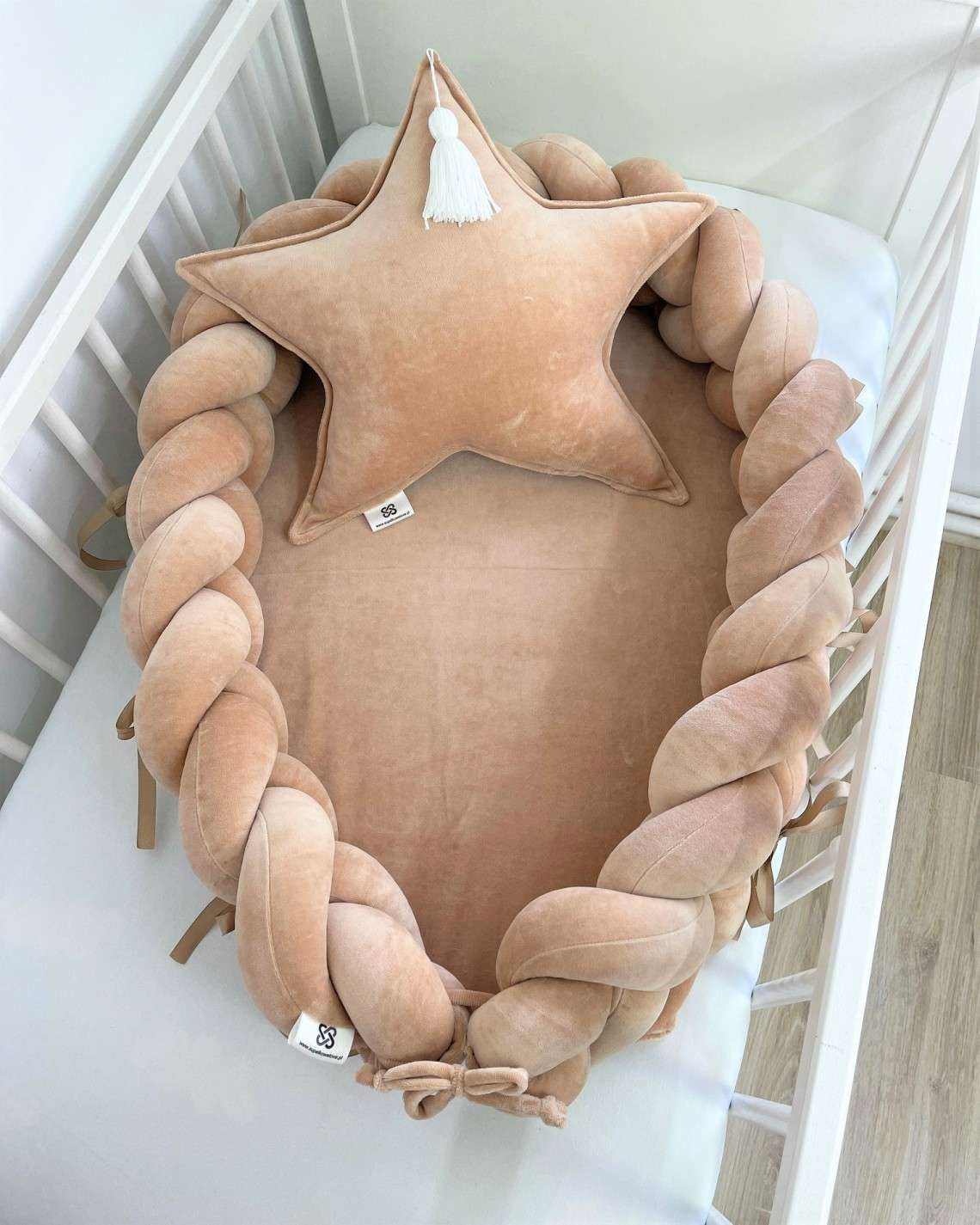 Kvaliteetsest puuvilla veluurist käsitsi valmistatud beebipesa loob turvalise, sooja ja hubase koha vastsündinule, puhkamiseks ning magamiseks. Ideaalne kingitus katsikuks või babyshoweriks.